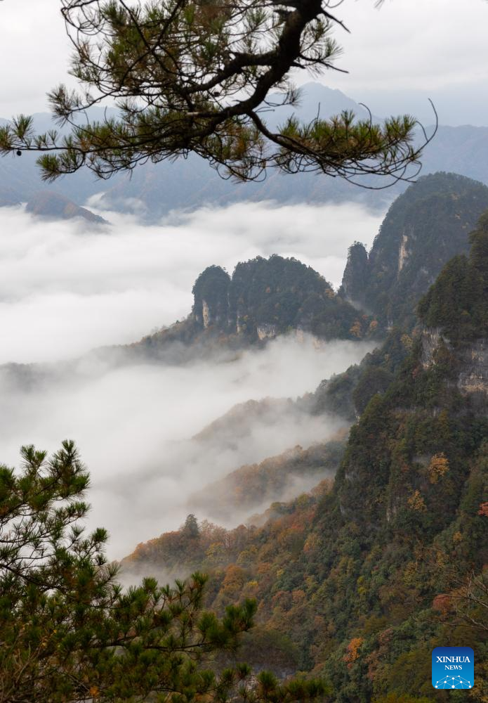 This photo taken on Nov. 6, 2024 shows the scenery in Guangwu Mountain scenic area in Bazhong City, southwest China's Sichuan Province. (Xinhua/Jiang Hongjing)