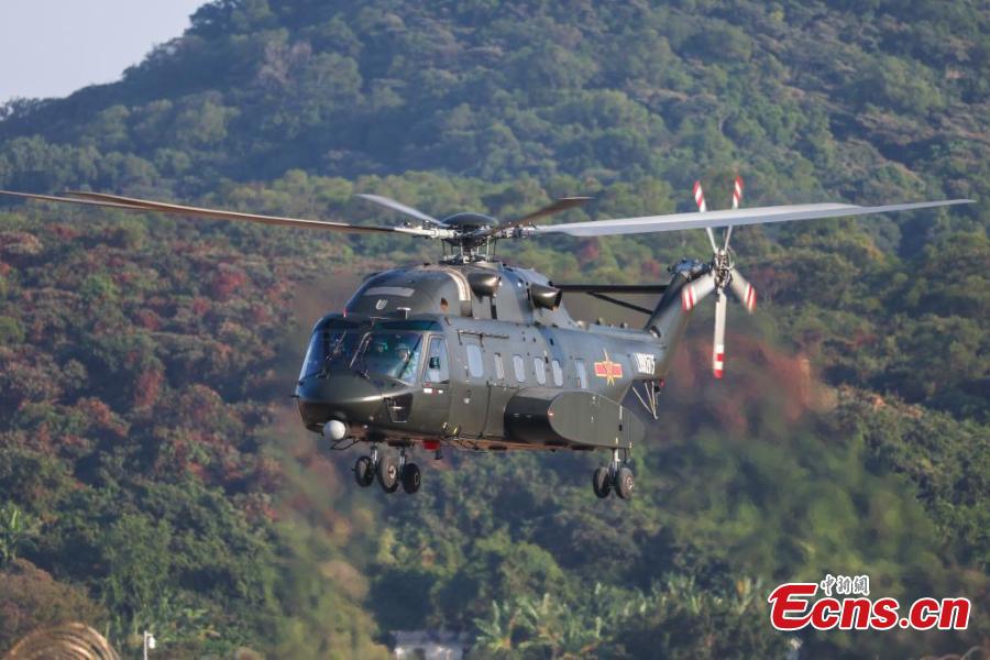 A PLA's Z-8L transport helicopter arrives at the Zhuhai International Air Show Center, south China's Guangdong Province, Nov. 7, 2024. (Photo: China News Service/Chen Jimin)