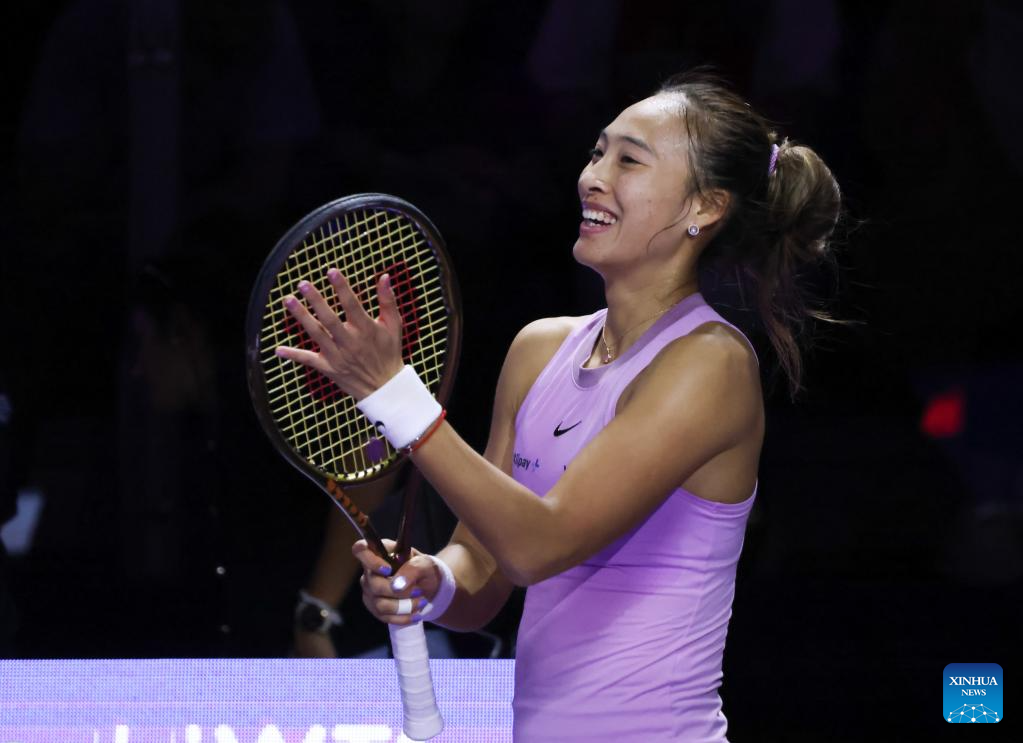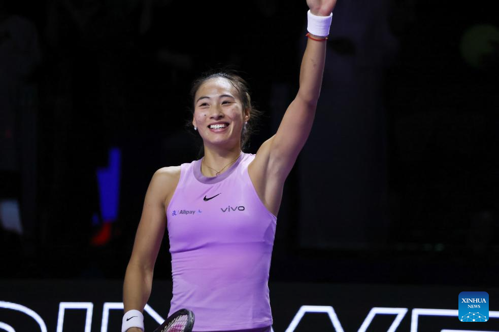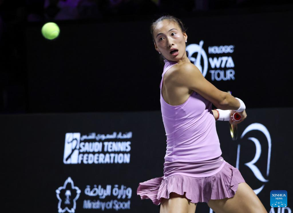 RIYADH, Nov. 8 (Xinhua) -- China's Paris Olympic gold medalist Zheng Qinwen advanced to the final of the WTA Finals in her tournament debut, after defeating the Czech Republic's Barbora Krejcikova in the semifinals here on Friday.