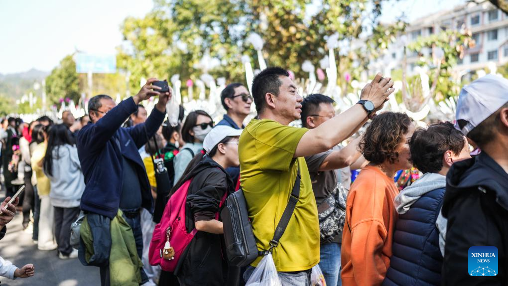 People watch a parade in celebration of the Miao New Year at Leishan County of Qiandongnan Miao and Dong Autonomous Prefecture, southwest China's Guizhou Province, Nov. 10, 2024. Miao New Year is a major festival of people of Miao ethnic group. In 2008, the festival was listed as a national-level intangible cultural heritage. (Xinhua/Tao Liang)