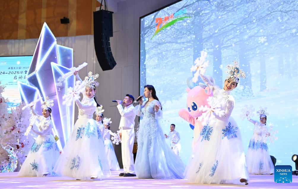 Artists perform during the opening ceremony of the Arxan 2024-2025 ice and snow season and 19th ice and snow festival in Arxan of Hinggan League, north China's Inner Mongolia Autonomous Region, Nov. 10, 2024. The opening ceremony of the Arxan 2024-2025 ice and snow season and 19th ice and snow festival was held here on Sunday. Throughout the ice and snow season, Arxan will host a variety of activities to attract visitors. (Xinhua/Bei He)