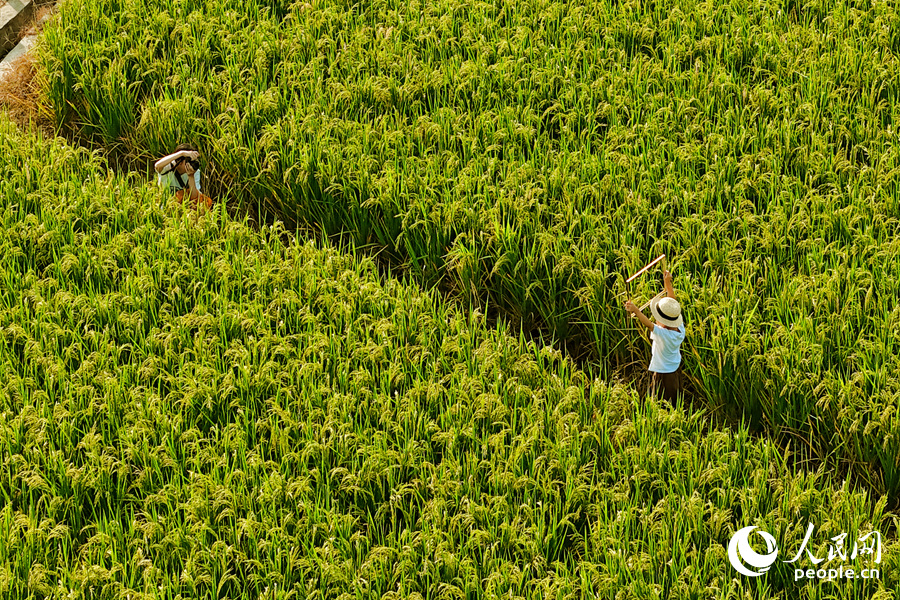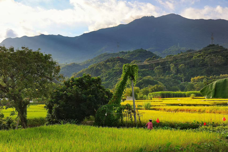 The ripened rice takes on a yellow tint in Tiantou village, Jimei district, Xiamen city, southeast China's Fujian Province. (Photo/Li Xianfeng)