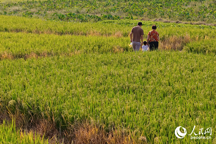 More than 600 mu (about 40 hectares) of late-season rice begins to head and ripen in Tiantou village, Jimei district, Xiamen city, southeast China's Fujian Province. (People's Daily Online/Chen Bo)