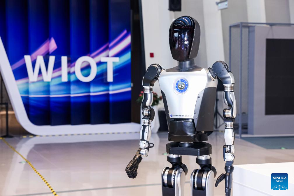 A humanoid robot is pictured at the 2024 World Internet of Things (IoT) Exposition in Wuxi, east China's Jiangsu Province, Nov. 11, 2024. (Xinhua)