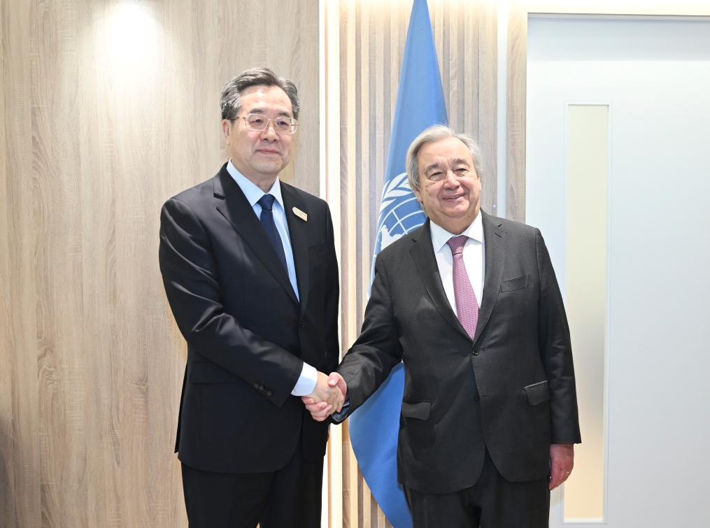 Ding, Chinese President Xi Jinping's special representative and a member of the Standing Committee of the Political Bureau of the Communist Party of China Central Committee, made the remarks in a meeting with United Nations Secretary-General Antonio Guterres on the sidelines of the World Leaders Climate Action Summit during the 29th session of the Conference of the Parties to the United Nations Framework Convention on Climate Change (COP29) in Baku, Azerbaijan.