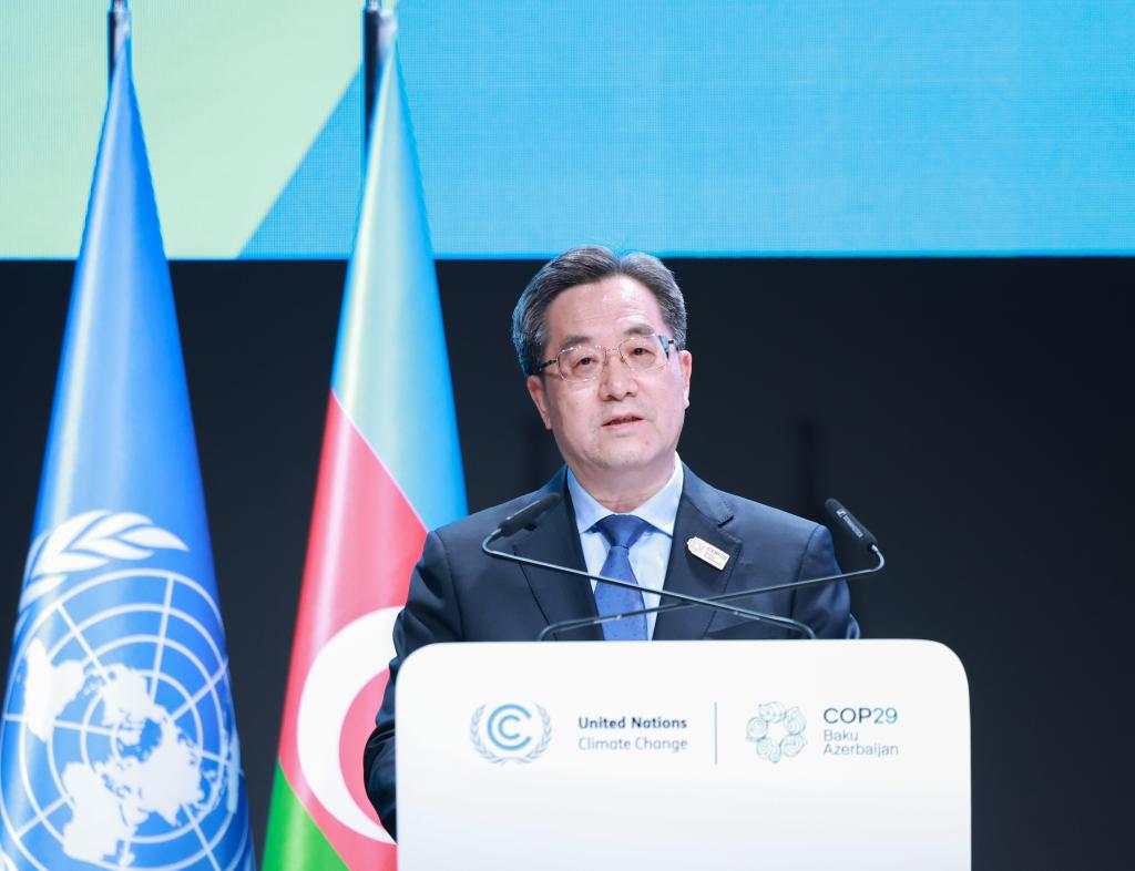 Ding, Chinese President Xi Jinping's Special Representative and a member of the Standing Committee of the Political Bureau of the Communist Party of China Central Committee, made the remarks when addressing the World Leaders Climate Action Summit during the 29th session of the Conference of the Parties to the United Nations Framework Convention on Climate Change (COP29) in Baku, Azerbaijan.