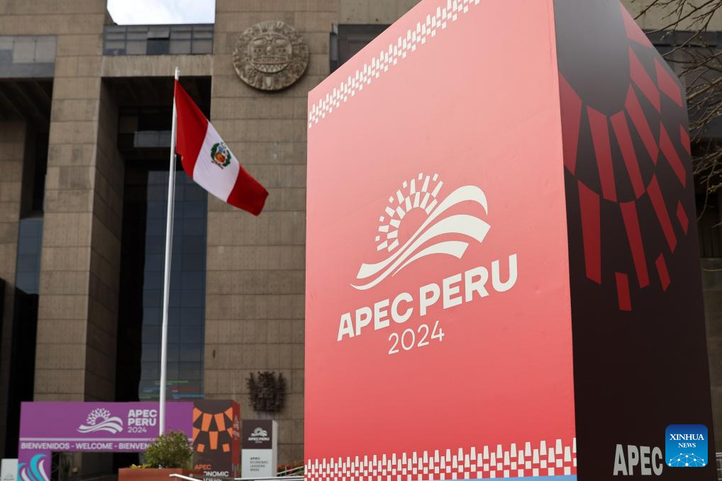 This photo shows the logo of APEC 2024 in Lima, Peru, Nov. 13, 2024. The 31st APEC Economic Leaders' Meeting will be held in Lima. (Xinhua/Mariana Bazo)