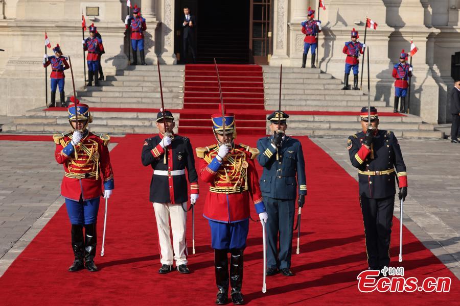 Xi attends welcome ceremony hosted by Peruvian President Boluarte