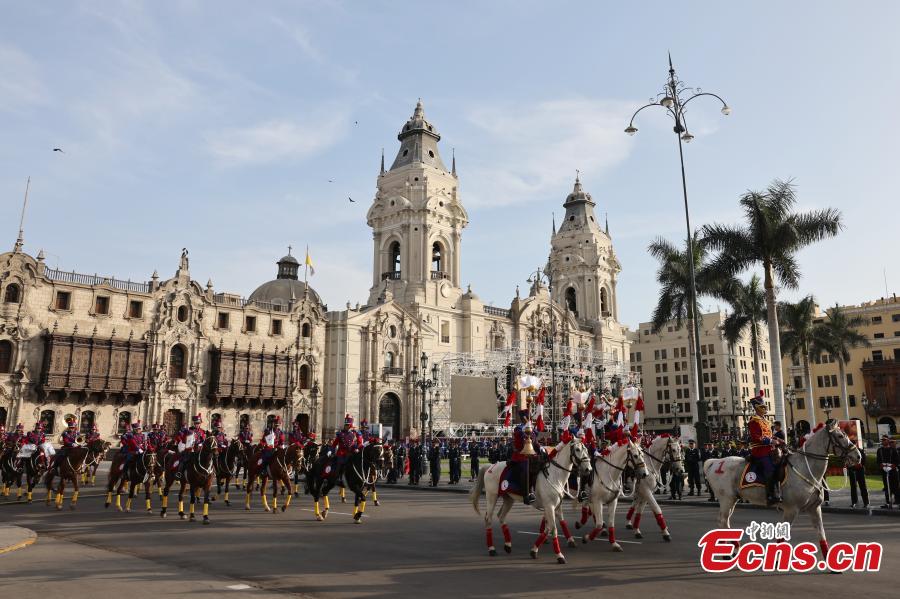 Chinese President Xi Jinping attends a grand welcome ceremony hosted by Peruvian President Dina Boluarte in Lima, Peru, Nov. 14, 2024. (Photo: China News Service/Sheng Jiapeng)