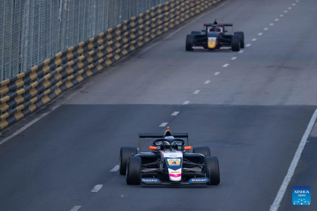 Ugo Ugochukwu (front) of the United States drives during the FIA FR World Cup race at the 71st Macao Grand Prix in Macao, south China, Nov. 17, 2024. (Xinhua/Cheong Kam Ka)