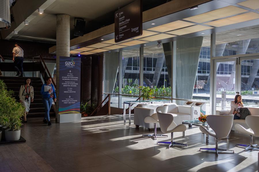 This photo shows a view of the G20 International Media Center in Rio de Janeiro, Brazil, on Nov. 17, 2024. (Photo by Claudia Martini/Xinhua)