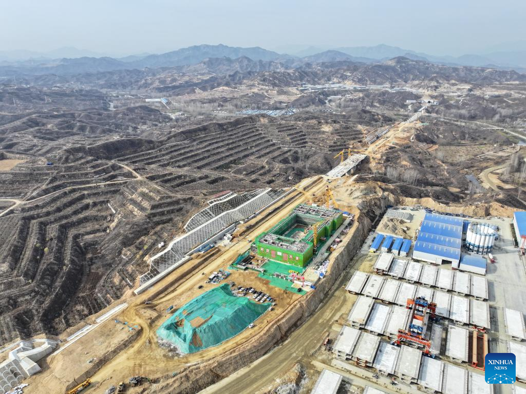 With a designed speed of 350 kilometers per hour and spanning 342 kilometers, the Xiong'an-Xinzhou High-speed Railway will link the Xiong'an New Area in north China's Hebei Province and Xinzhou City in north China's Shanxi Province after completion. (Xinhua/Mu Yu)