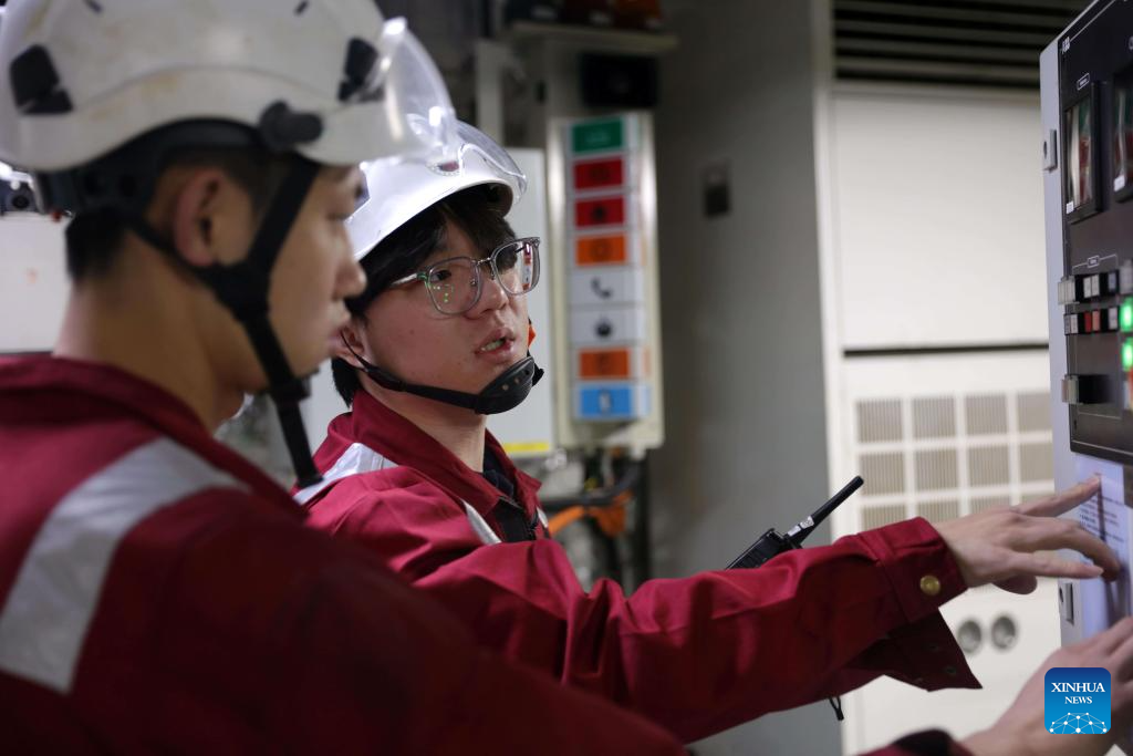 Engineers check equipment aboard China's research icebreaker Xuelong 2. Currently on China's 41st Antarctic expedition, research icebreakers Xuelong and Xuelong 2, or Snow Dragon and Snow Dragon 2, will begin to plough through the belt of prevailing westerlies, nicknamed the "rolling forties," on Tuesday. (Xinhua/Huang Taoming)