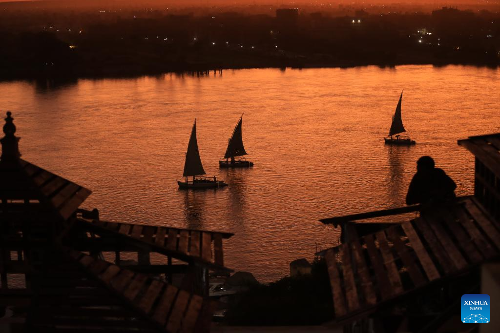 Boats sail on the Nile River at sunset in Cairo, Egypt, on Nov. 18, 2024. (Xinhua/Sui Xiankai)