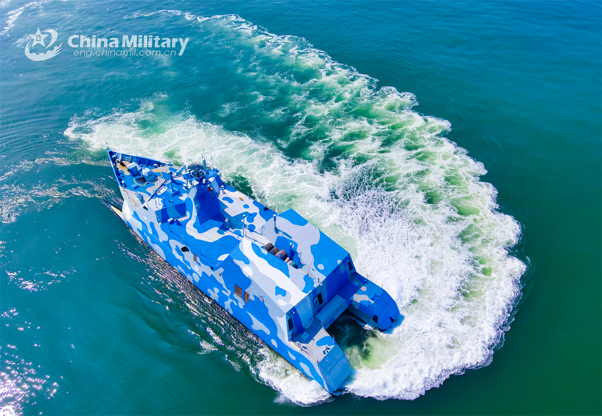 A fast attack missile boat attached to the Chinese PLA Navy sails at sea during a maritime training exercise on October 15, 2024. (eng.chinamil.com.cn/Photo by Chen shuang)