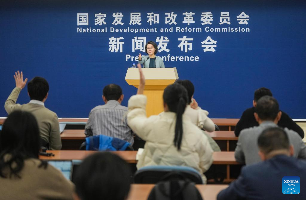 Li Chao, spokesperson of the National Development and Reform Commission (NDRC), gestures at a press conference in Beijing, capital of China, Nov. 19, 2024. China's economy is expected to maintain its recovery momentum in November and December thanks to the effectiveness of the country's policy toolkit, the NDRC said on Tuesday. (Xinhua/Chen Yehua)