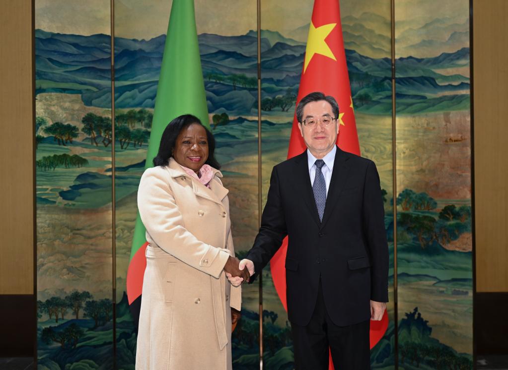 China is willing to work with Zambia to implement the important consensus reached by the two heads of state and the outcomes of the Beijing Summit of the Forum on China-Africa Cooperation, deepen cooperation on infrastructure, agriculture, minerals and other fields, to advance China-Zambia relations to a higher level.