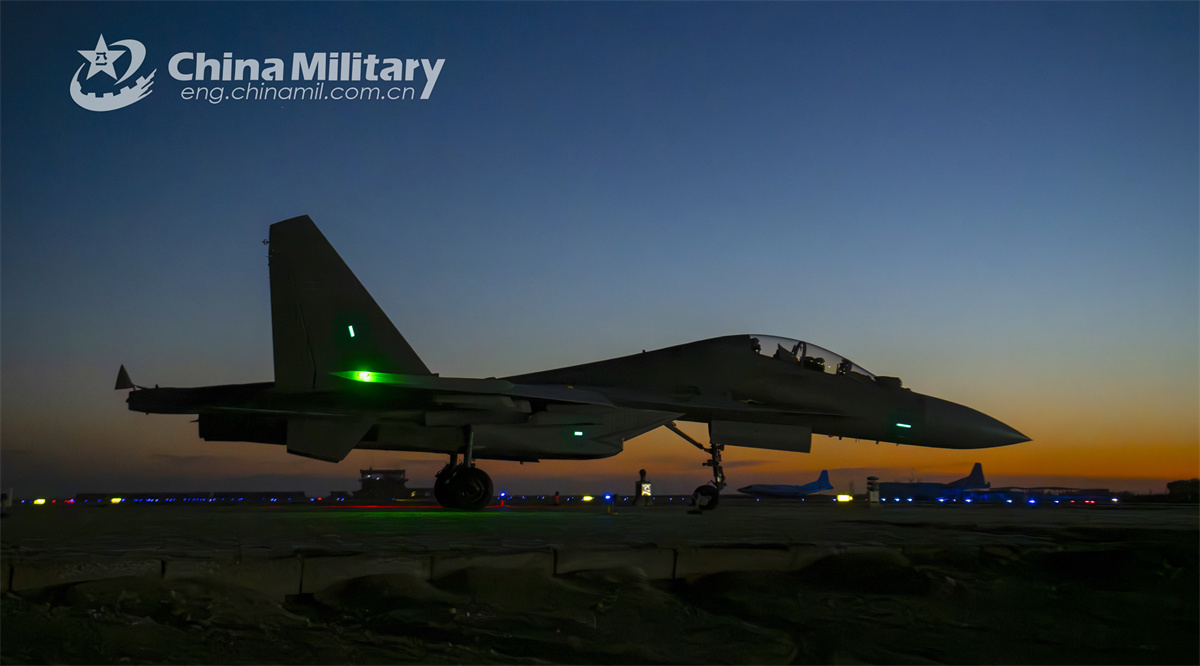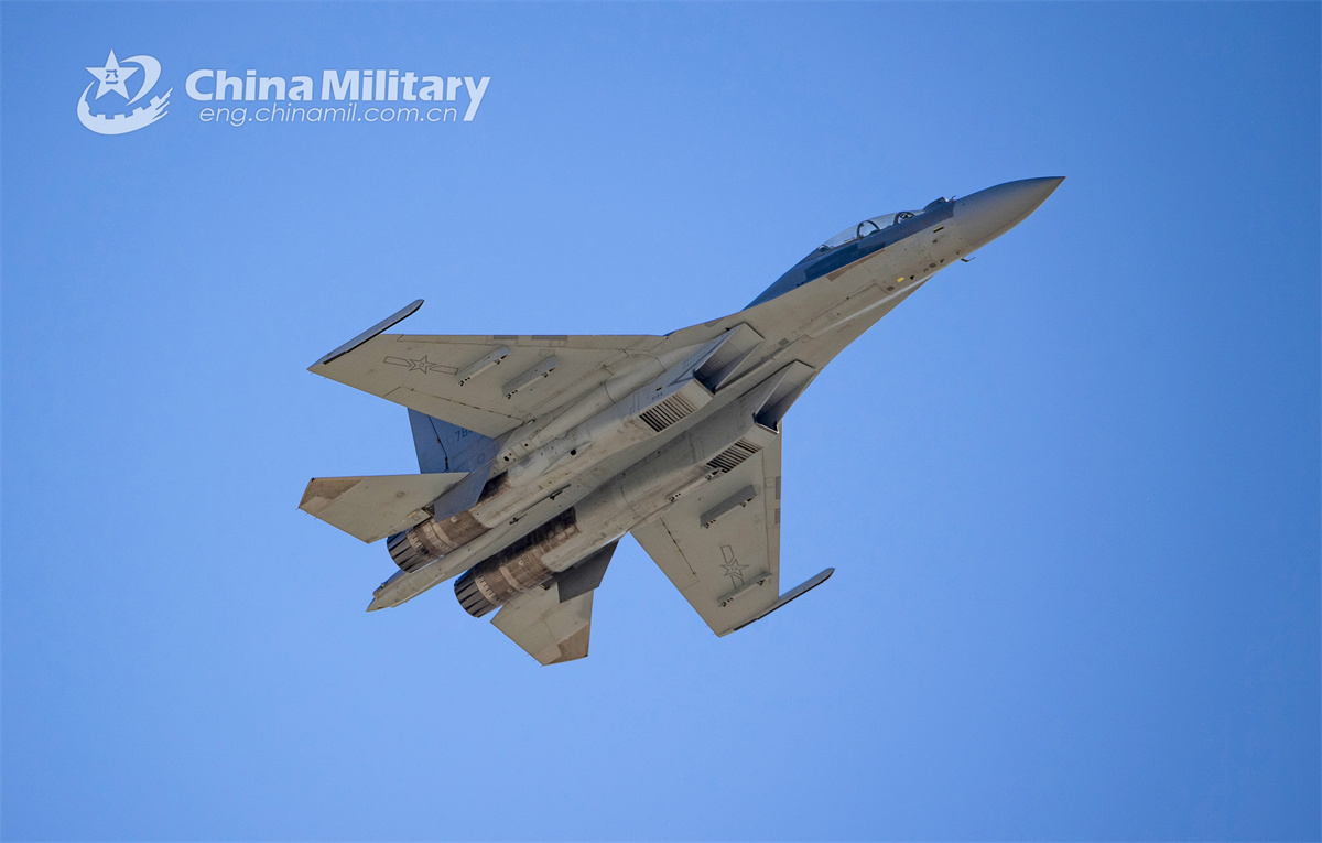 A J-16 multi-role fighter jet attached to an aviation regiment under the Chinese PLA Air Force soars into the air during a round-the-clock flight training exercise on October 10th, 2024. (eng.chinamil.com.cn/Photo by Xu Chengcheng)