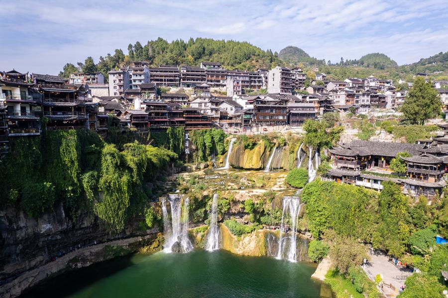 CHANGSHA, Nov. 21 (Xinhua) -- Jose Chaves, 40, from Costa Rica, recently visited Furong Town, enticed by pictures of its magnificent waterfall and traditional stilt houses built on the hillside -- famous features of this ancient scenic spot in Xiangxi Tujia and Miao Autonomous Prefecture, central China's Hunan Province.