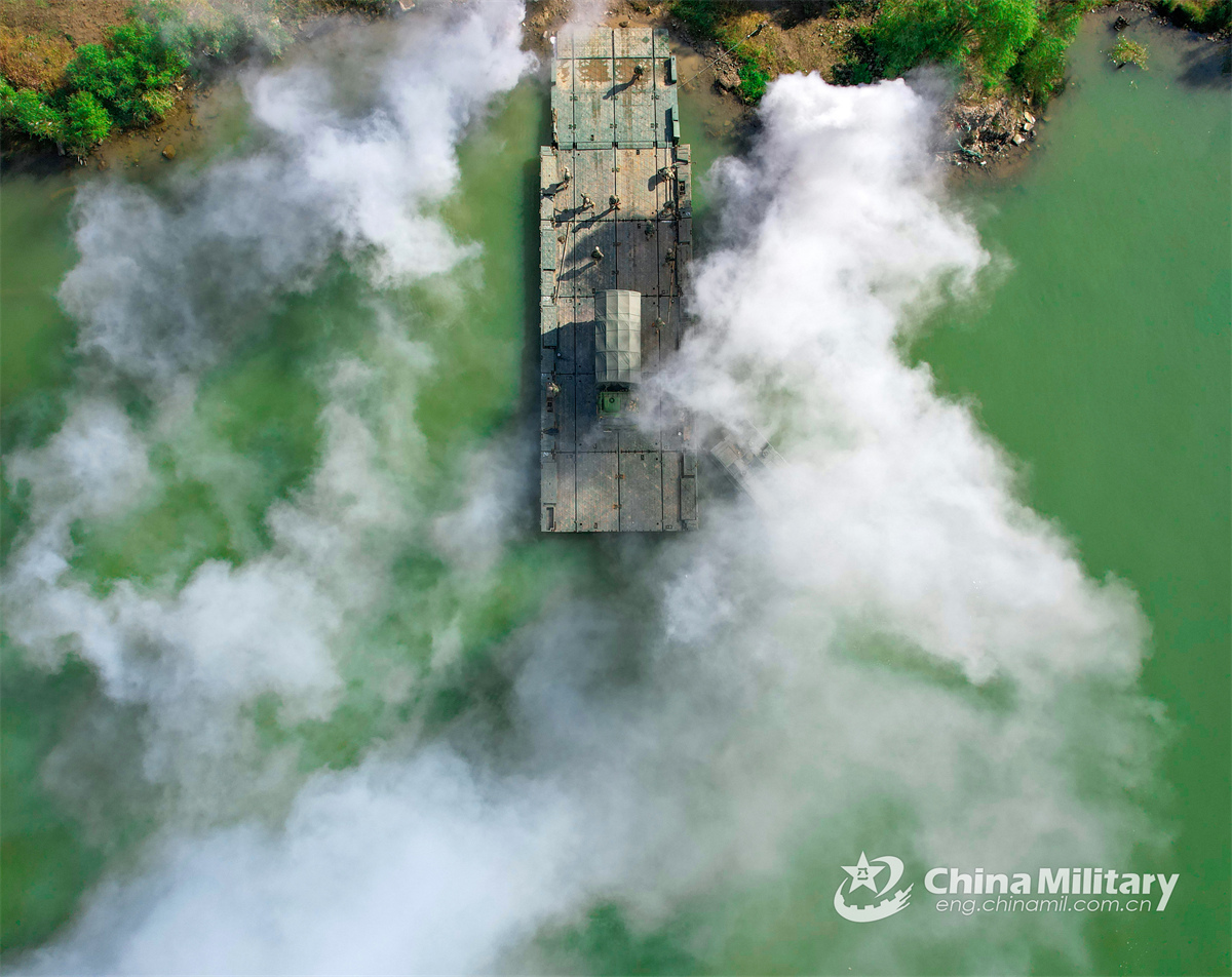 Soldiers assigned to a pontoon unit under the Chinese PLA 71st Group Army set up a ferry during a river-crossing engineering support training exercise on October 25, 2024. (eng.chinamil.com.cn/Photo by Ma Ming)