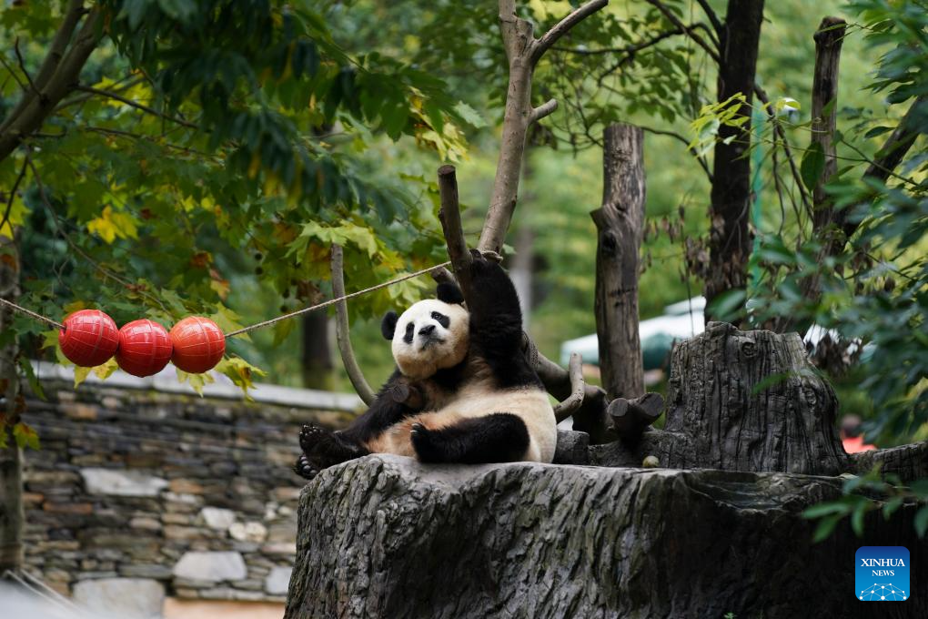 Giant panda Mei Huan is pictured at the Chengdu Research Base of Giant Panda Breeding in Chengdu, southwest China's Sichuan Province, Nov. 21, 2024. Mei Huan, female, was born at Zoo Atlanta in the United States on July 15, 2013. (Xinhua/Xu Bingjie)