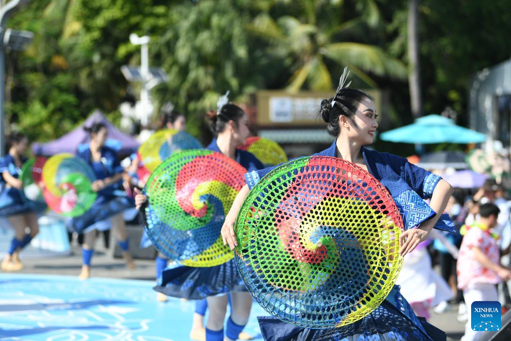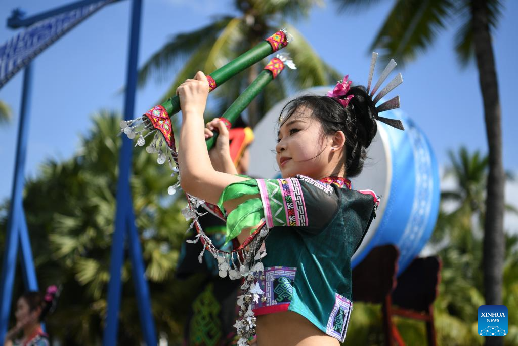 Artists perform during a performance gala of the 12th National Traditional Games of Ethnic Minorities of China in Sanya, south China's Hainan Province, Nov. 26, 2024. (Xinhua/Zhang Bowen)