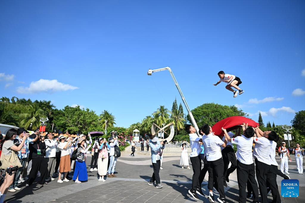 Visitors enjoy a performance gala of the 12th National Traditional Games of Ethnic Minorities of China in Sanya, south China's Hainan Province, Nov. 26, 2024. (Xinhua/Zhang Bowen)