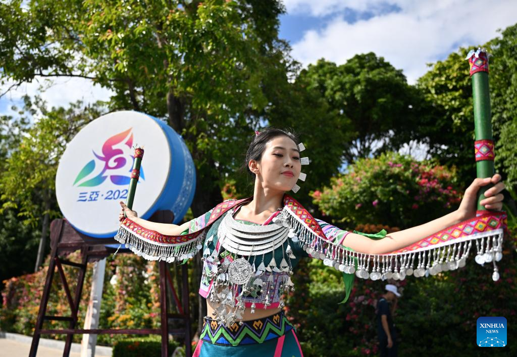 An artist performs during a performance gala of the 12th National Traditional Games of Ethnic Minorities of China in Sanya, south China's Hainan Province, Nov. 26, 2024. (Xinhua/Sun Fanyue)