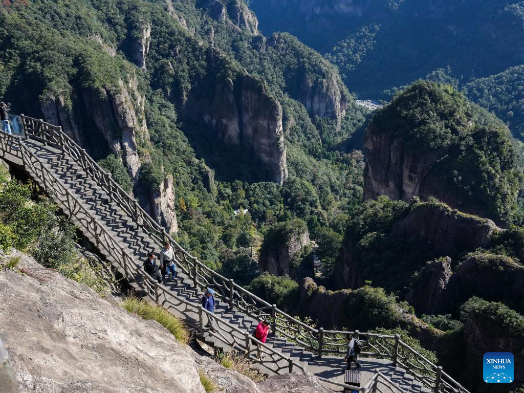 Tourists visit the Yandang Mountain scenic spot in Yueqing City, east China's Zhejiang Province, Nov. 26, 2024. Yandang Mountain is a national 5A-level scenic area, a national forest park and a UNESCO-accredited geopark. The beautiful scenery and rich historical culture there has attracted millions of visitors. (Xinhua/Huang Zongzhi)