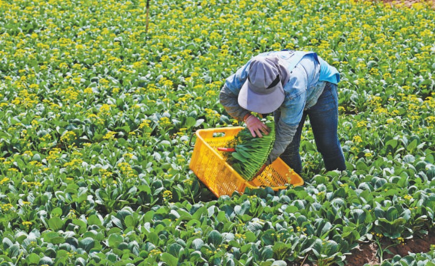 In a vegetable planting base in Xianjin village, Ligang township, Helan county, Yinchuan, northwest China's Ningxia Hui autonomous region, which mainly supplies its produce to the Guangdong-Hong Kong-Macao Greater Bay Area (GBA), Chinese flowering cabbages were just harvested, and they would soon be shipped to Guangzhou, south China's Guangdong province around 2,300 kilometers away.