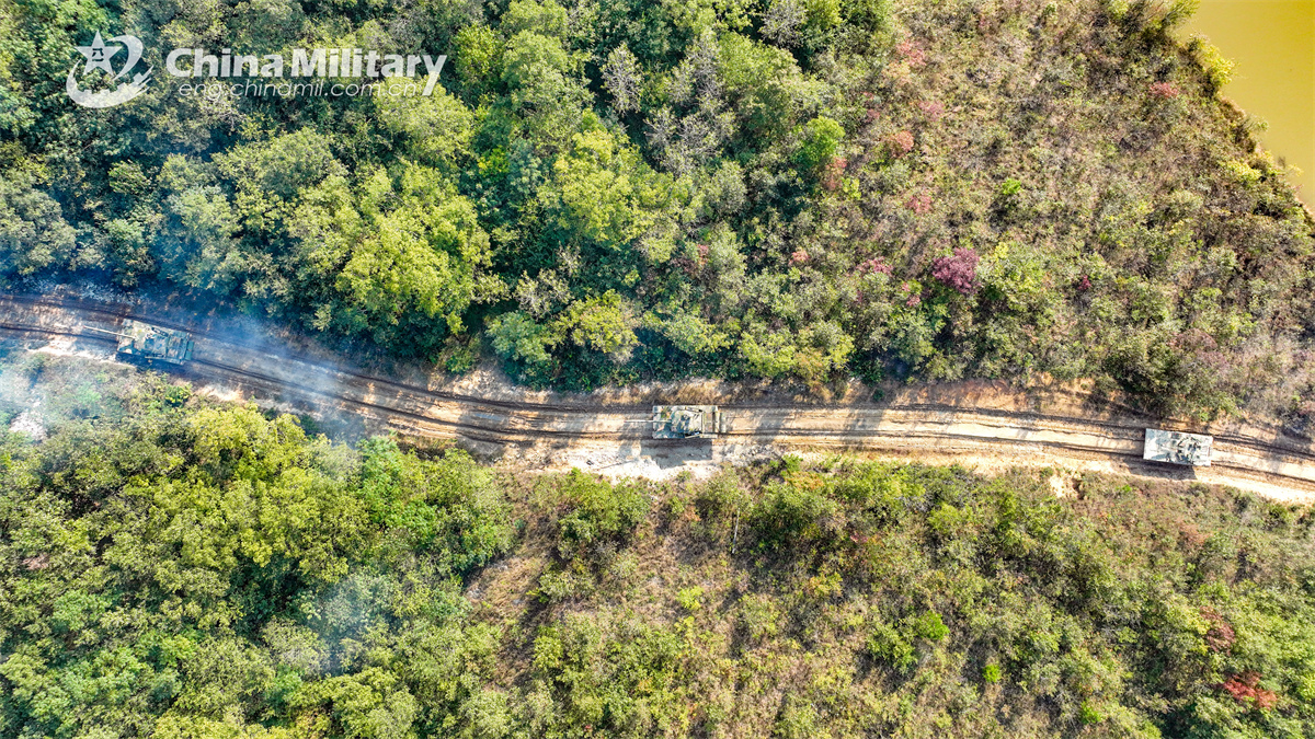 Armored vehicles attached to a brigade under the Chinese PLA 71st Group Army maneuver towards the designated area during a live-fire training exercise on October 25, 2024. (eng.chinamil.com.cn/Photo by Huang Zhenyu)