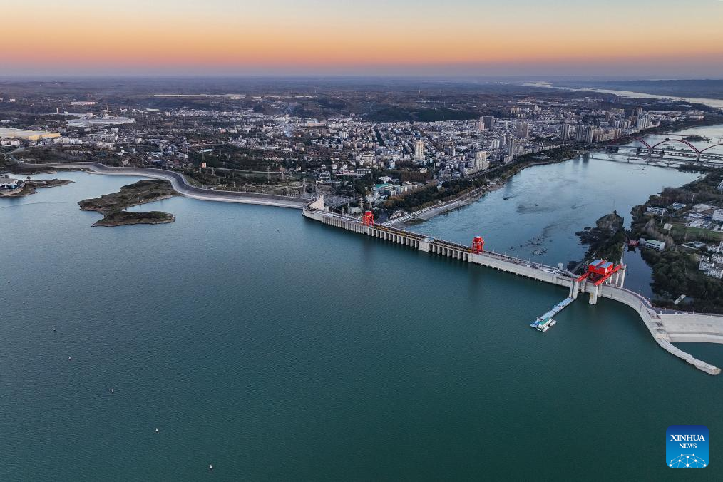 An aerial drone photo taken on Nov. 30, 2024 shows a view of the Danjiangkou Dam in central China's Hubei Province. (Xinhua/Hu Jingwen)