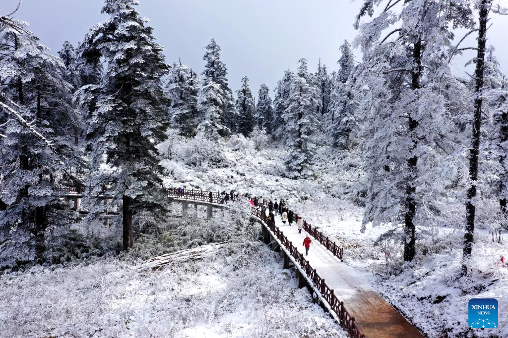 This photo taken on Nov. 28, 2024 shows the scenery of the Wawu Mountain in Hongya County, southwest China's Sichuan Province. (Photo by Zhang Zhongping/Xinhua)