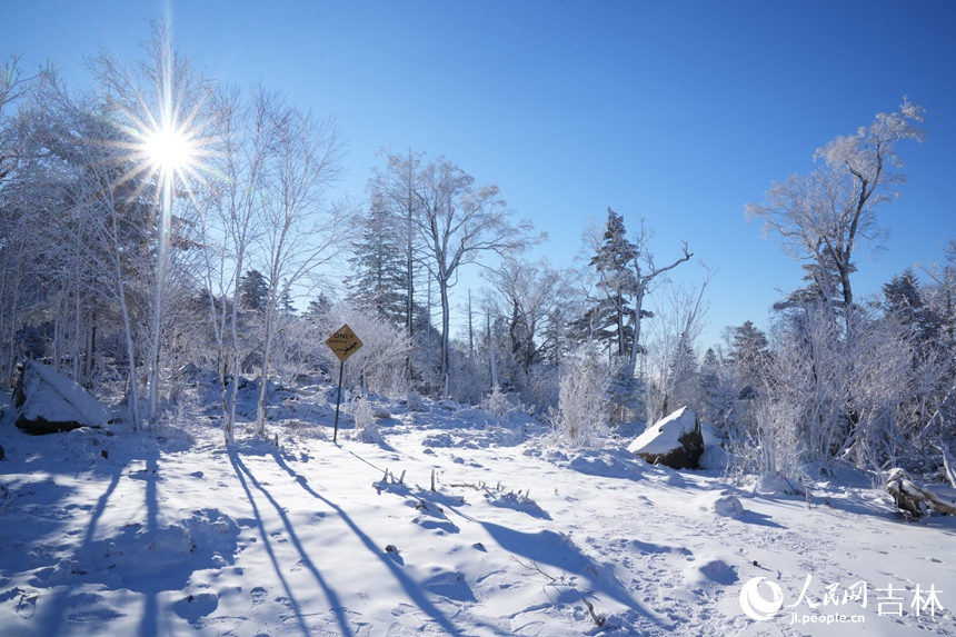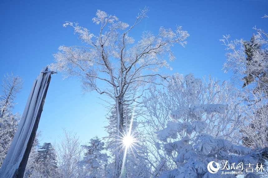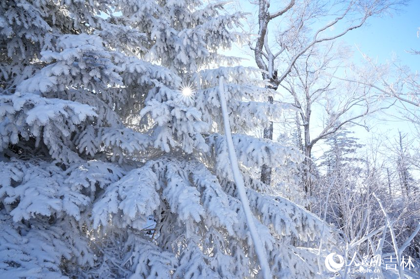 This photo shows the rime-covered landscape of Beidahu Ski Resort, northeast China's Jilin Province. (People's Daily Online/Li Yang)