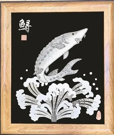 Photo shows a fish-skin painting. (Photo courtesy of the publicity department of the Communist Party of China Tongjiang municipal committee)