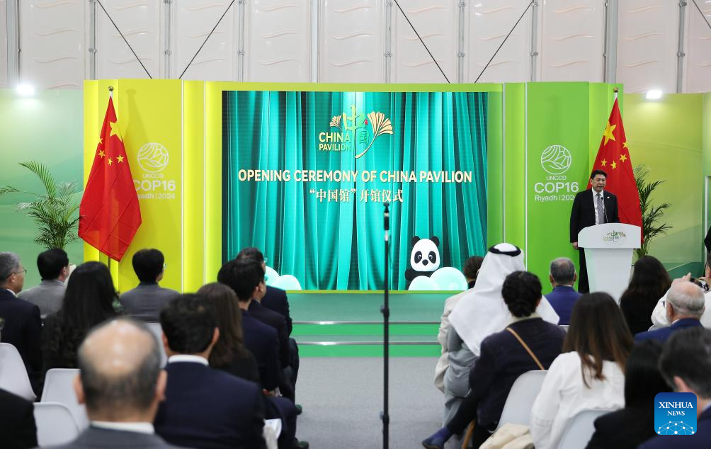 RIYADH, Dec. 2 (Xinhua) -- The China Pavilion at the 16th Conference of the Parties (COP16) to the United Nations Convention to Combat Desertification (UNCCD) officially opened on Monday, highlighting China's decades-long efforts and achievements in combating desertification.