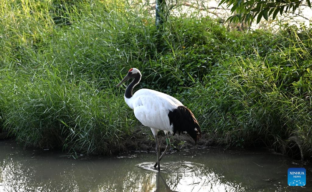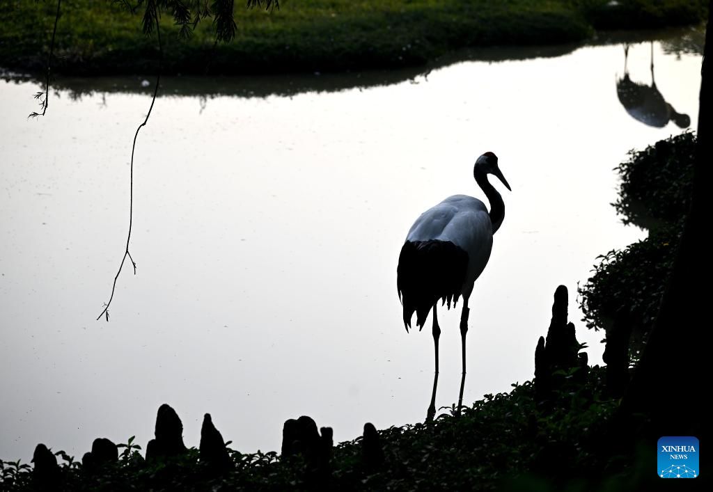 A red-crowned crane is seen at a wetland park of the Xinghu Scenic Area in Zhaoqing, south China's Guangdong Province, Dec. 2, 2024.