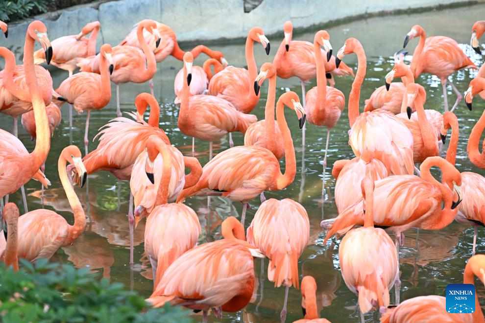 Flamingos are seen at a wetland park of the Xinghu Scenic Area in Zhaoqing, south China's Guangdong Province, Dec. 2, 2024.