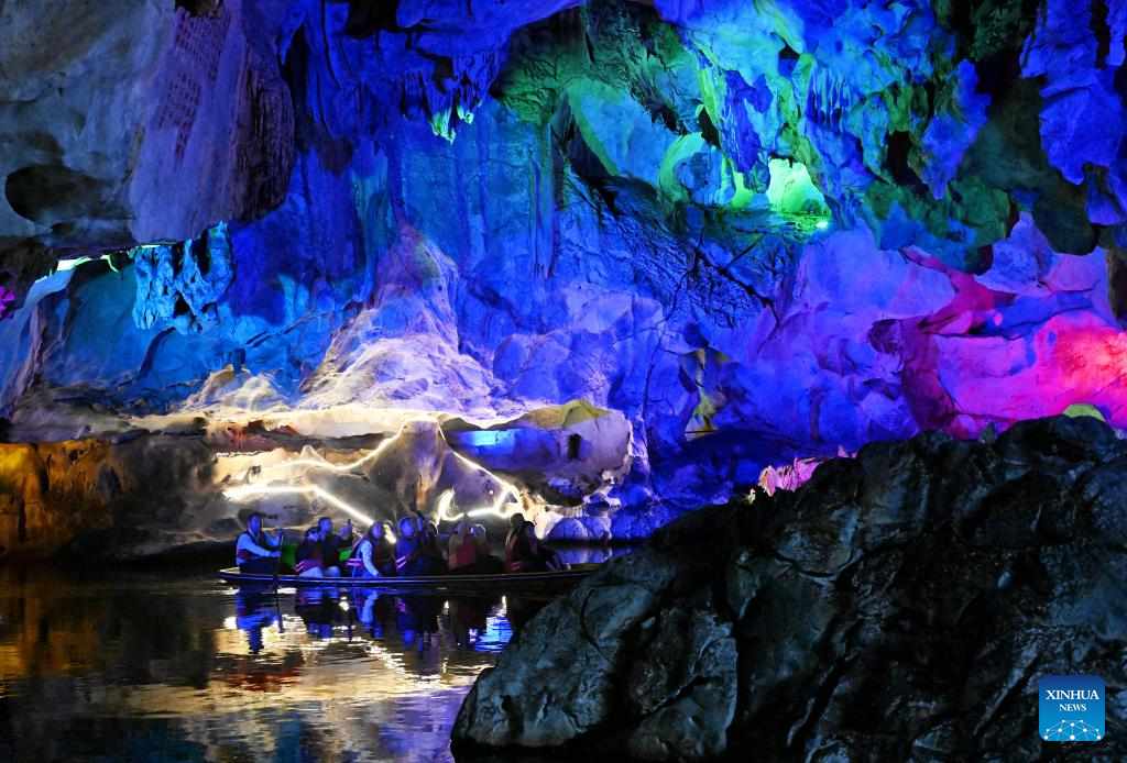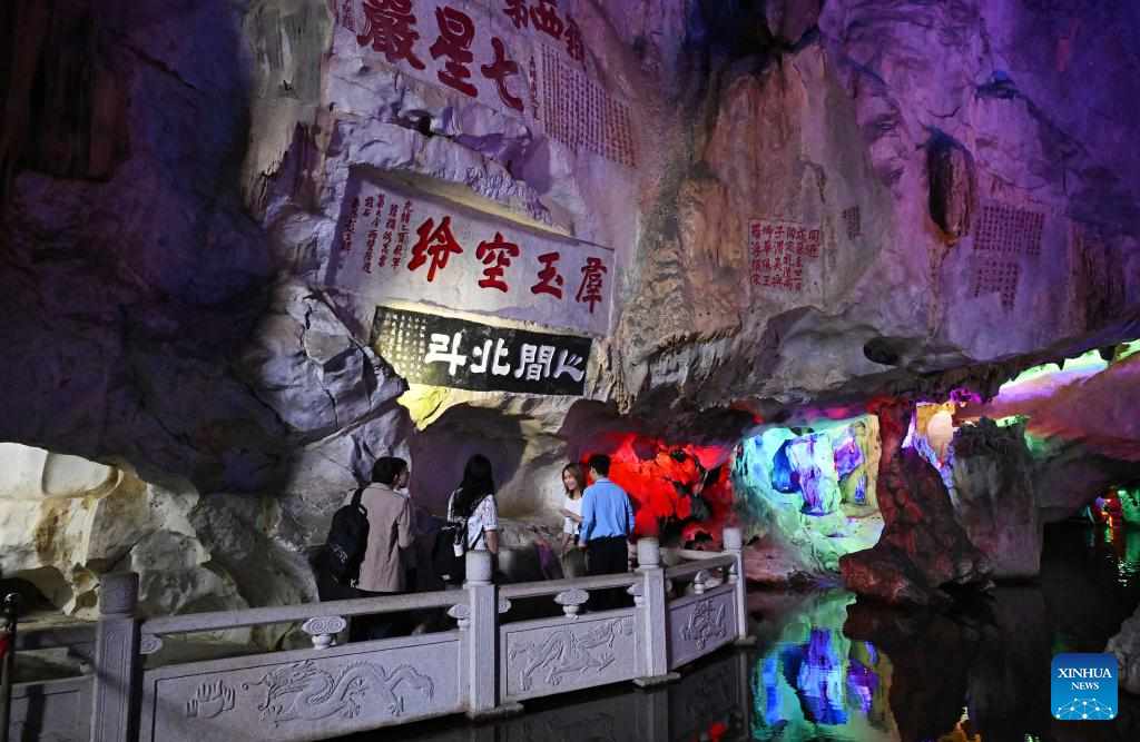 People visit a cave at the Qixingyan scenic spot of the Xinghu Scenic Area in Zhaoqing, south China's Guangdong Province, Dec. 2, 2024.
