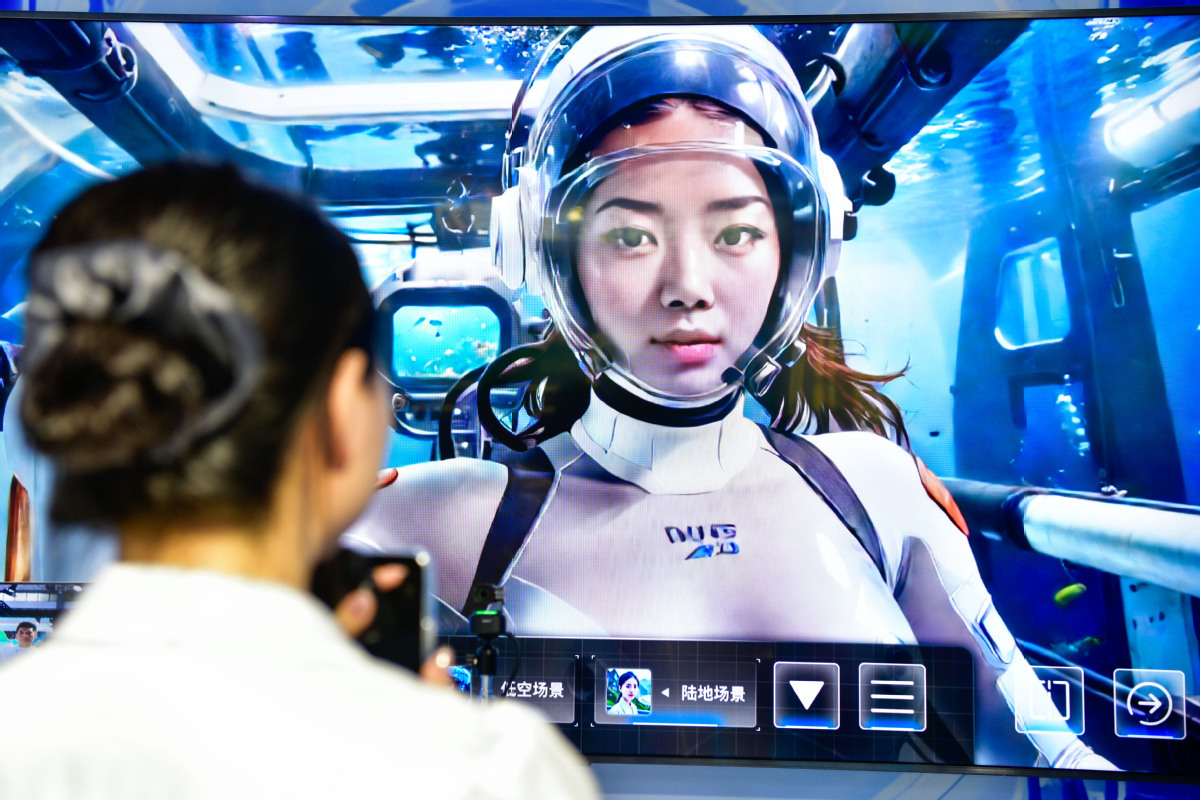 A woman experiences AI-generated content technology at the China International Big Data Industry Expo 2024 in Guiyang, capital of Southwest China's Guizhou province, on Aug 28, 2024. (Photo/Xinhua)
