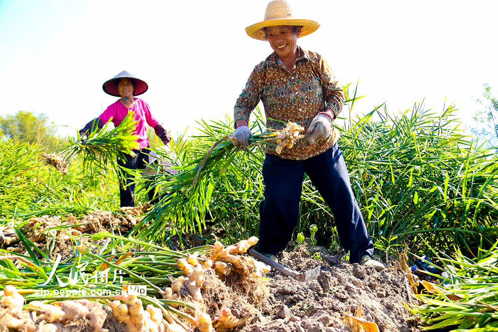 Farmers harvest ginger in Datang village, Xihe township, Mengshan county, south China's Guangxi Zhuang Autonomous Region, Dec. 2, 2024. (Photo/Zhou Huowen)