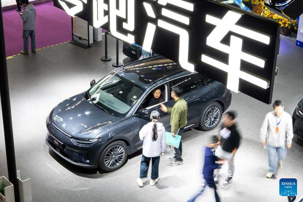 People visit the 20th China (Changsha) International Automobile Exposition in Changsha, central China's Hunan Province, Dec. 4, 2024. The 6-day exposition, with an exhibition area of 120,000 square meters, kicked off on Wednesday at the Changsha International Convention and Exhibition Center, showcasing more than 1,000 vehicles from over 80 automobile brands. (Xinhua/Chen Sihan)
