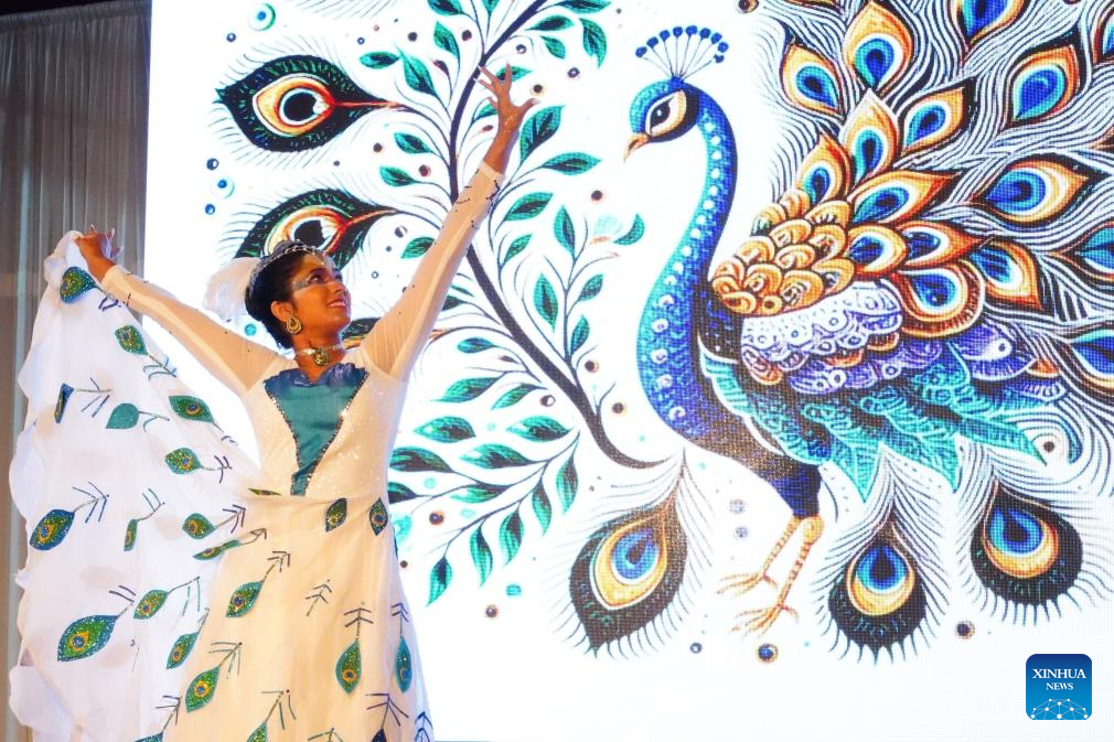 A student performs traditional Chinese dance during the Chinese Food Carnival in Colombo, Sri Lanka, Dec. 4, 2024. The Chinese Food Carnival was held here on Wednesday night, attracting over 200 guests from both China and Sri Lanka. (Xinhua/Wu Yue)