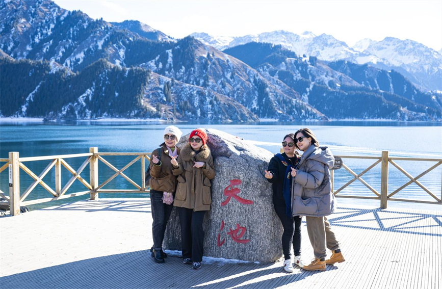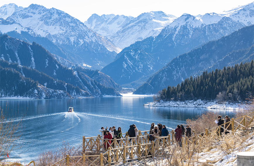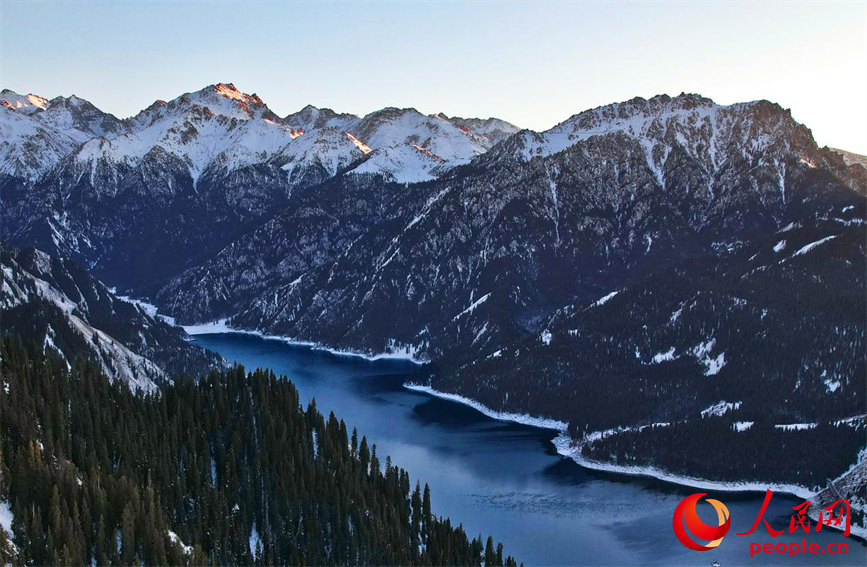 In early winter, the shores of Tianchi Lake in Changji Hui Autonomous Prefecture, northwest China's Xinjiang Uygur Autonomous Region, are adorned with snow-clad spruce trees and tranquil waters.