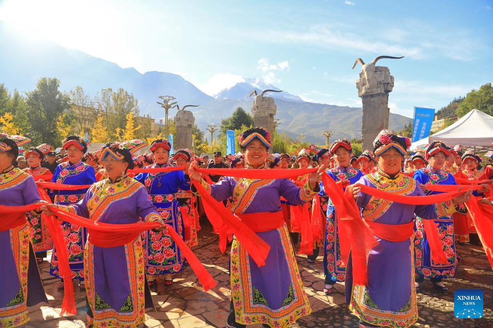 Local people perform dance to celebrate Qiang New Year festival in Maoxian County, southwest China's Sichuan Province, Nov. 1, 2024.?(Photo by He Qinghai/Xinhua)