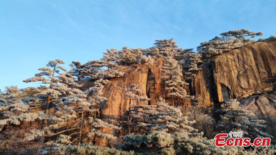 Landscape of rime-covered trees on the Huangshan Mountain scenic spot in east China's Anhui Province, Dec. 8, 2024. (China News Service/Hou Ruidong)