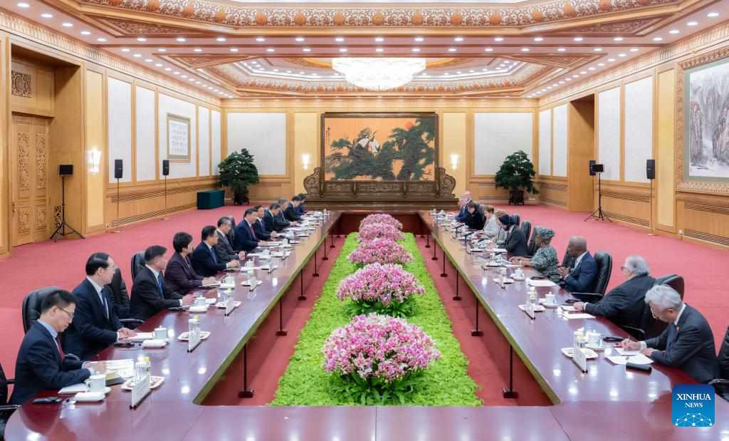 Chinese President Xi Jinping meets with heads of major international economic organizations, who came here for the "1+10" Dialogue, at the Great Hall of the People in Beijing, capital of China, Dec. 10, 2024. (Xinhua/Huang Jingwen)