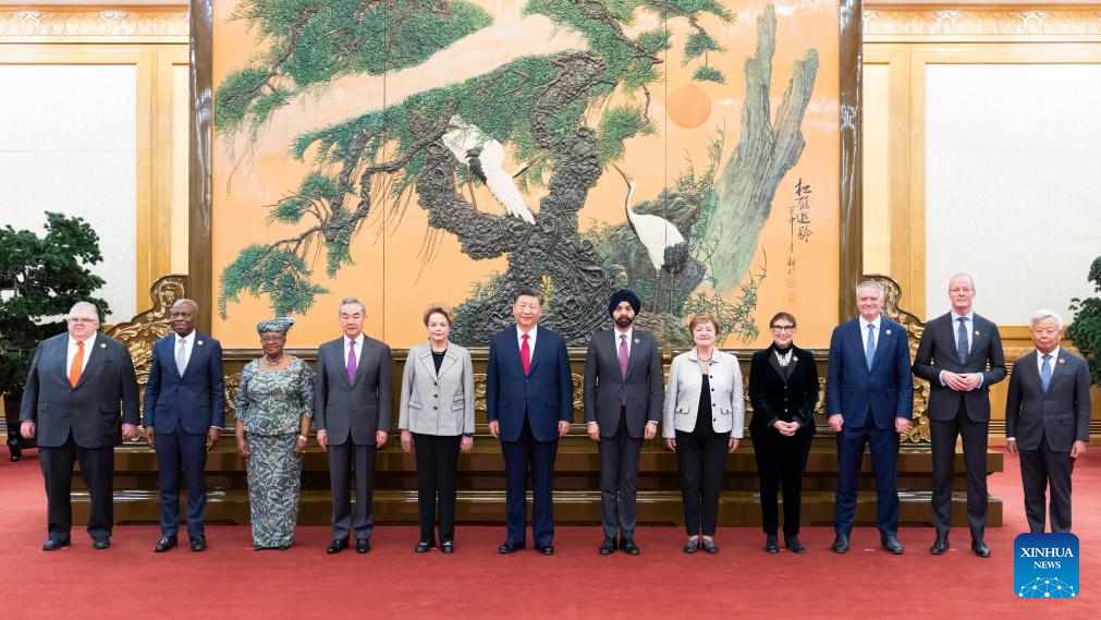 BEIJING, Dec. 10 (Xinhua) -- Chinese President Xi Jinping met with heads of major international economic organizations in Beijing on Tuesday.