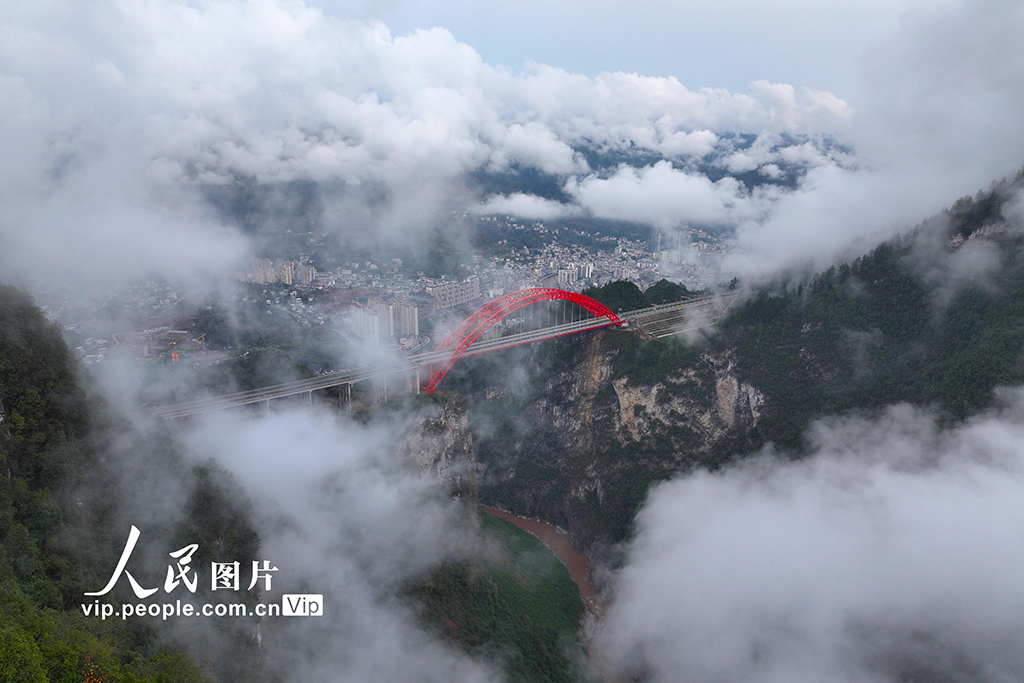 Loushuihe Bridge stands shrouded in mist in Hefeng county, central China's Hubei Province. (Photo/Zhang Yuanming)