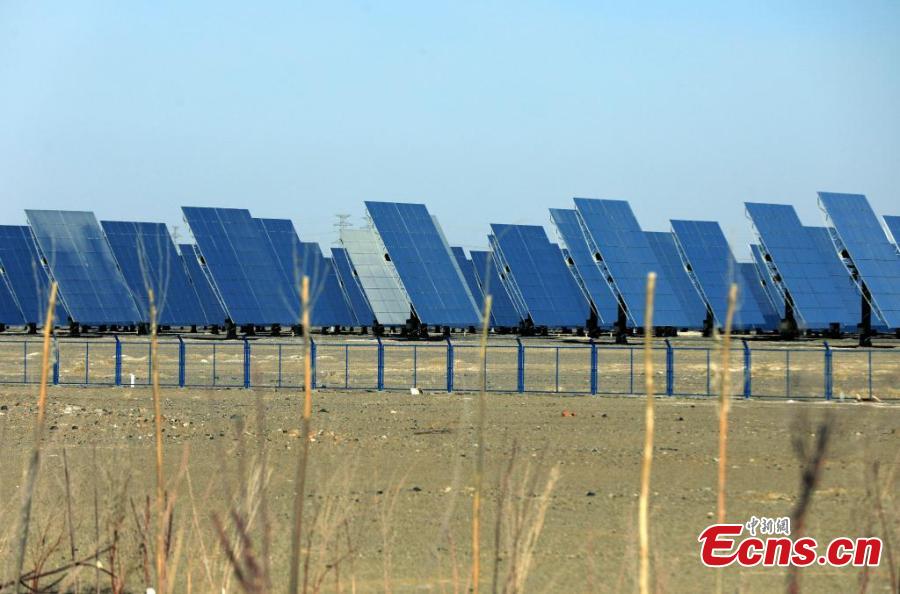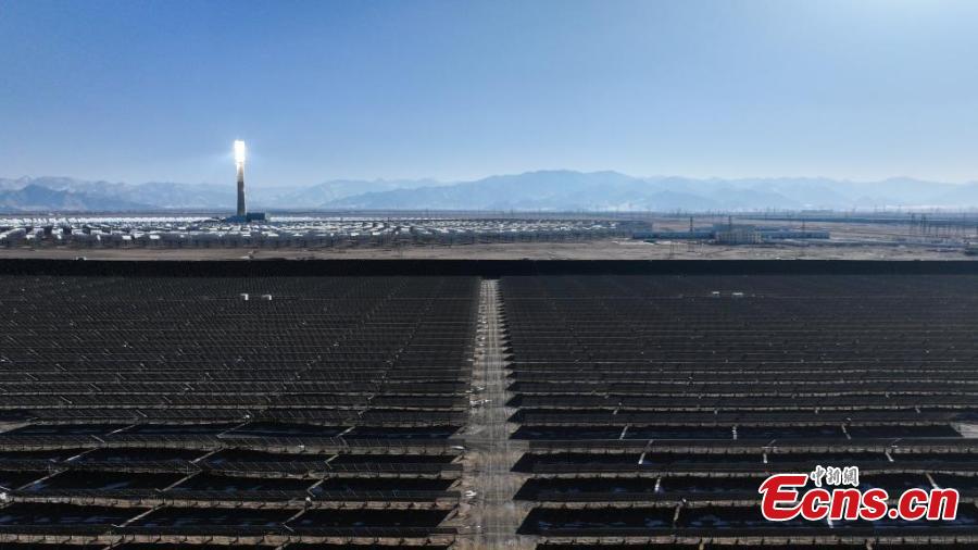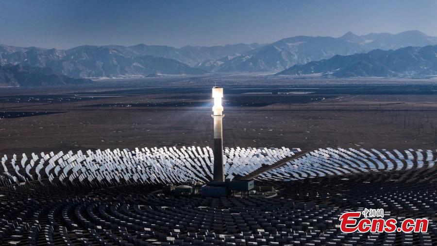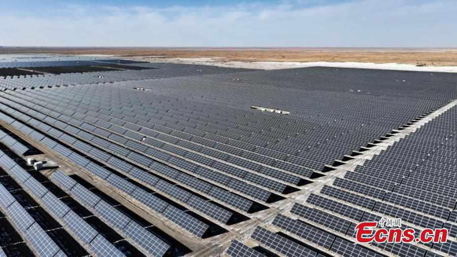 Photo taken on Dec. 8, 2024, shows the solar photovoltaic panels at the world's first wind-solar heat storage project in Golmud City, the Mongolian-Tibetan Autonomous Prefecture of Haixi, northwest China's Qinghai Province. (China News Service/Xue Di)
